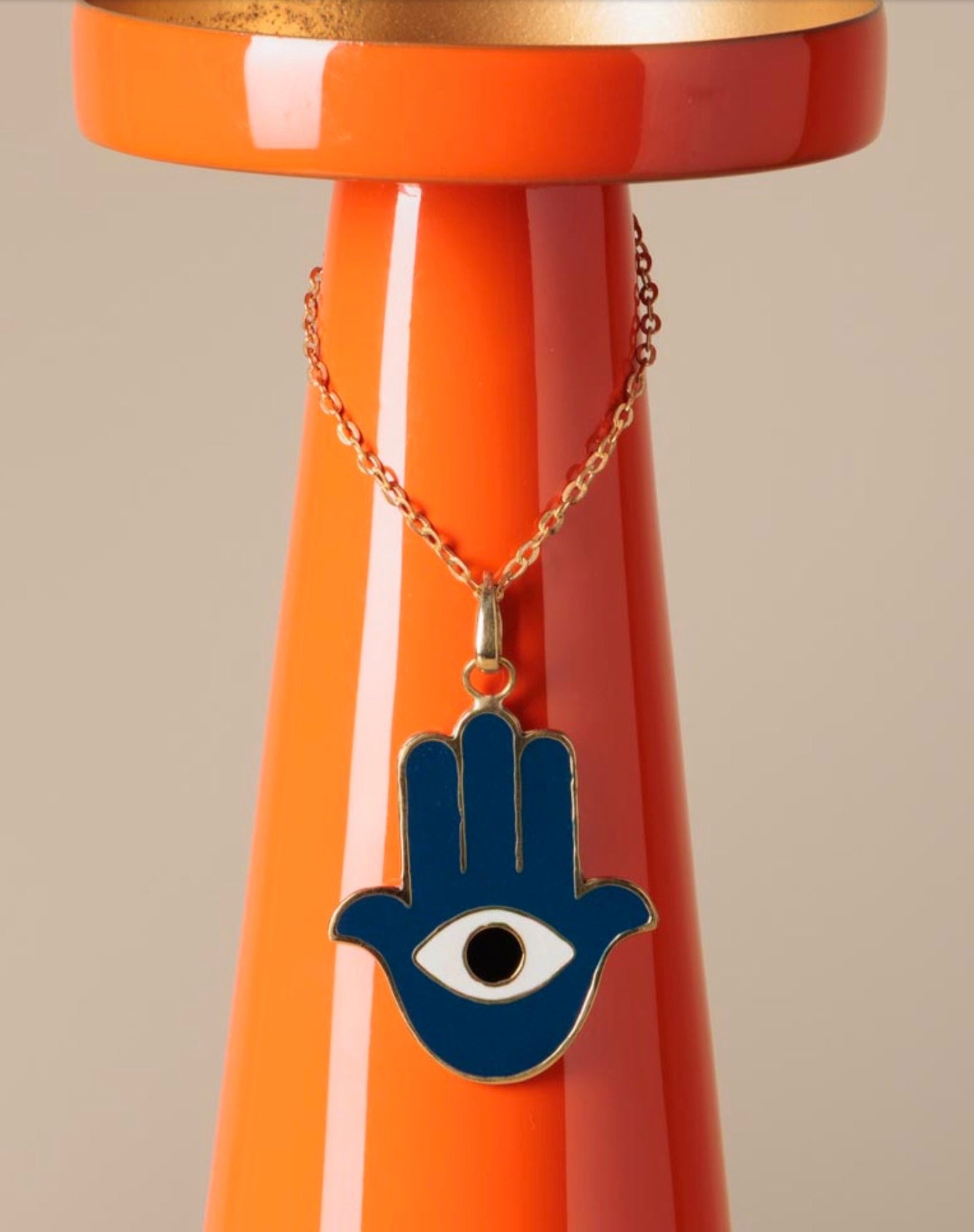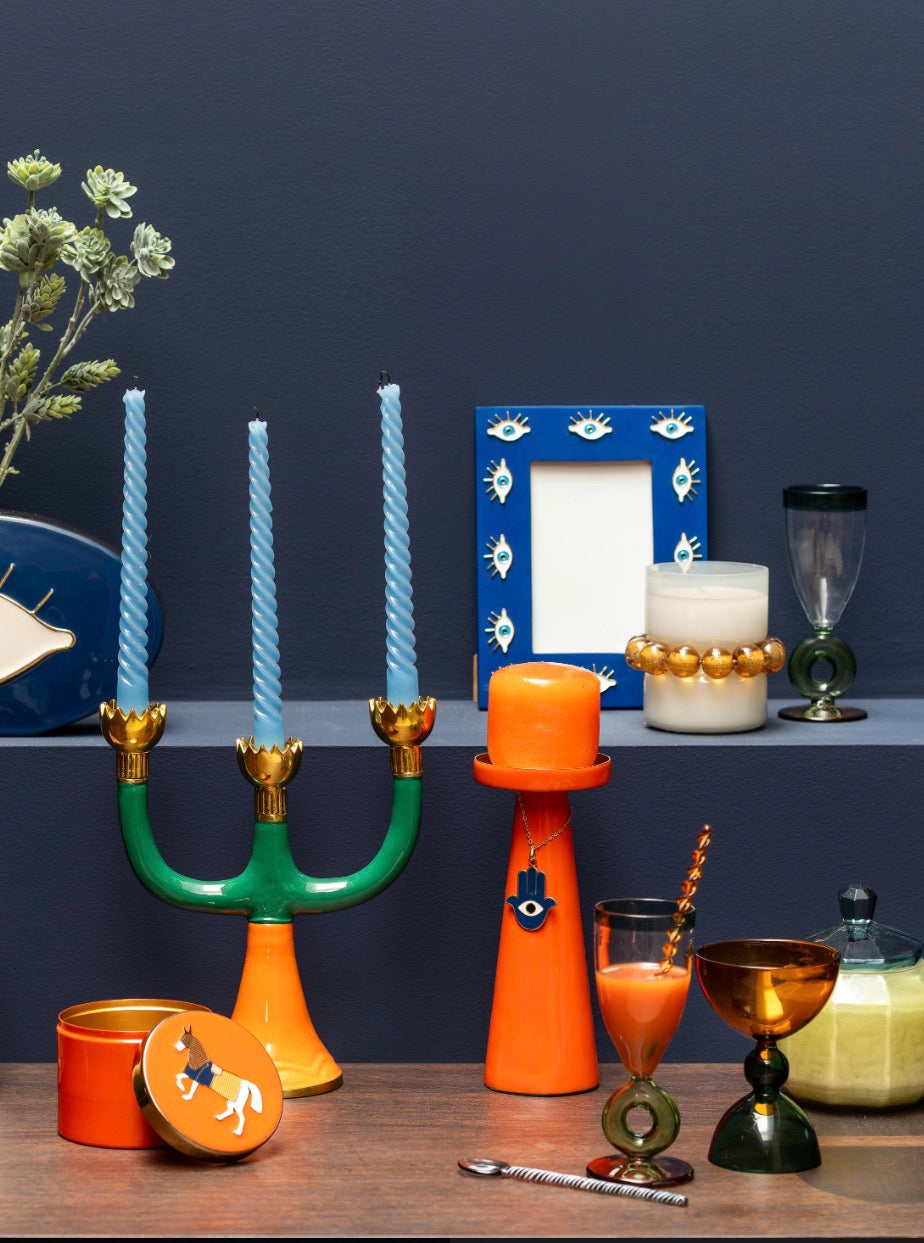 حامل شمع برتقالي بالذهبي مع تعليقة عين زرقاء