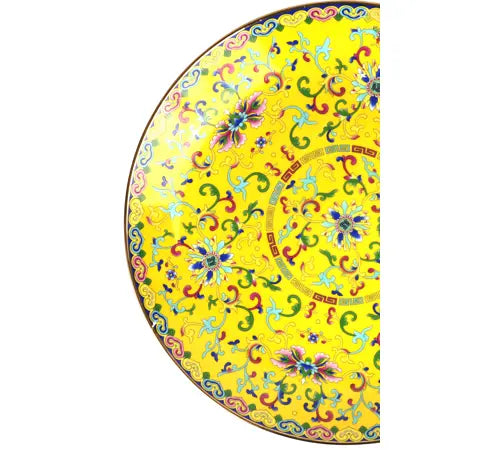السعر العادي 1,897.50 SR حفظ 0.00 SRImmerse yourself in the fascinating world of Far Eastern elegance with our exclusive "Chinese Flowers" object bowl. This exquisite piece embodies the perfect symbiosis of traditional craftsmanship and modern design that is guaranteed to attract attention. With an impressive size of approximately 41.2 cm in diameter and a vibrant yellow colour, this porcelain bowl brings a touch of Asian sophistication to any home and lifestyle retail environment.