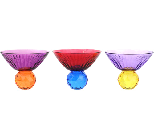 The harmonious combination of shape and colour makes these goblet bowls a real eye-catcher. With a height of around 13.4 cm, they are ideal as a central decorative element on dining tables, sideboards. The crystalline transparency of each bowl catches the light in a magical way and creates a fascinating play of light that will brighten up your room.