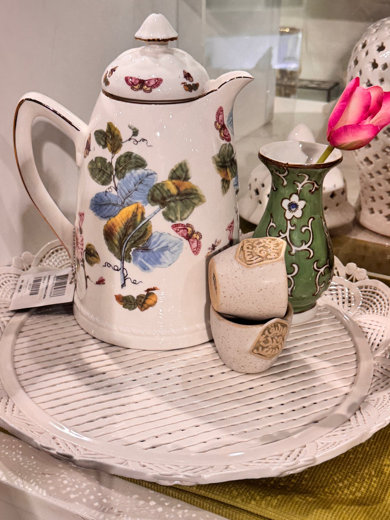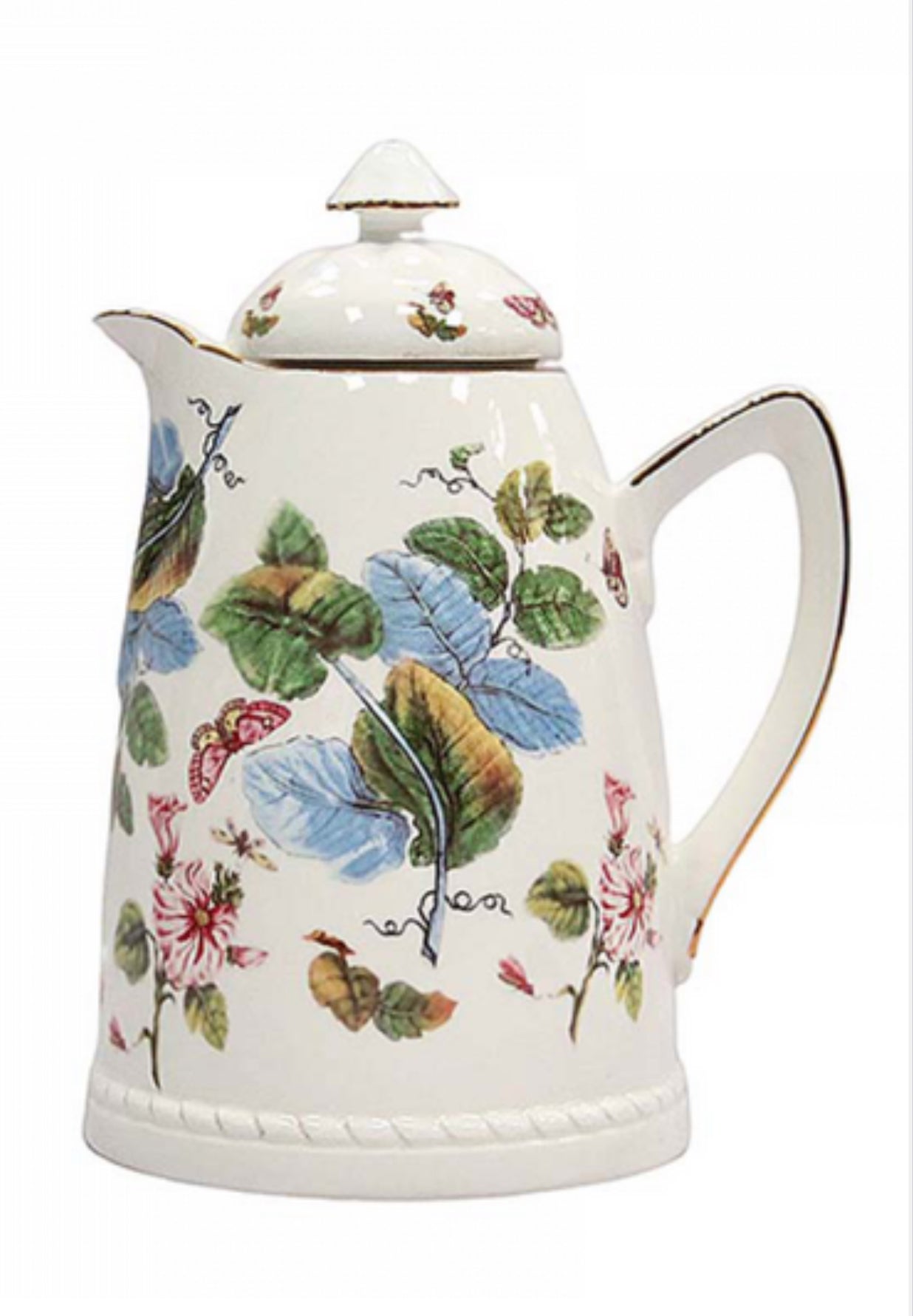 THERMOS PORCELAIN CARAFE FLORALترمس بورسلين ورودمختلفة و أوراق الإحصان وفراشات