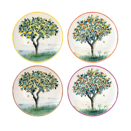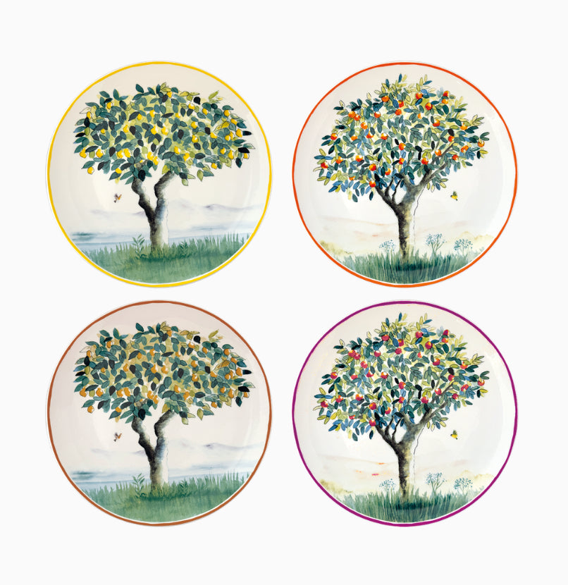 This set of 4 flat plates celebrates the generous nature and the sweetness of shared moments. Each plate highlights a fruit tree: fig tree, lemon tree, orange tree, cherry tree – illustrated with delicacy and freshness. A tribute to the cycle of the seasons and the fruits they offer, for a table full of charm and vitality. Because indulgence also begins with the eyes