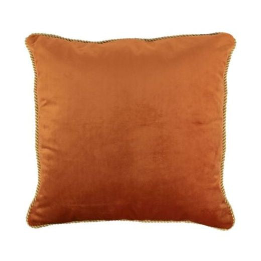 مخدة قطيفة سادة برتقالي مع طرف ذهبي مربعة