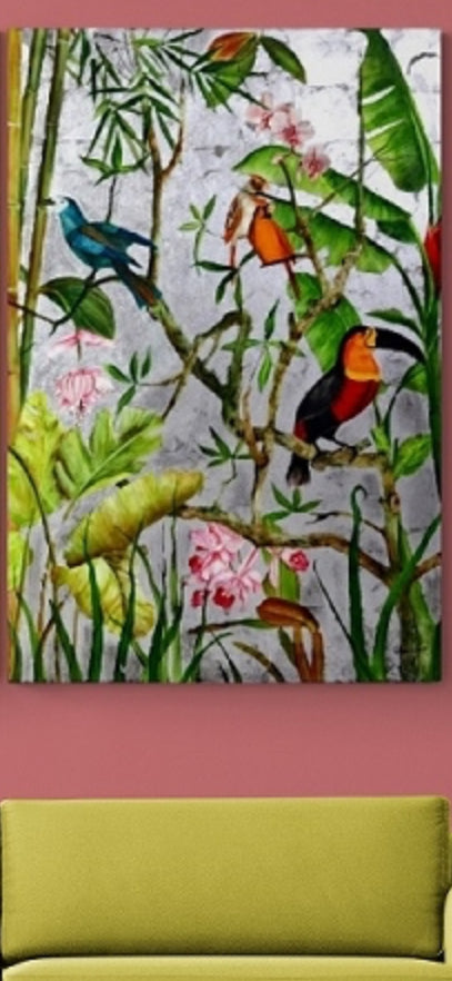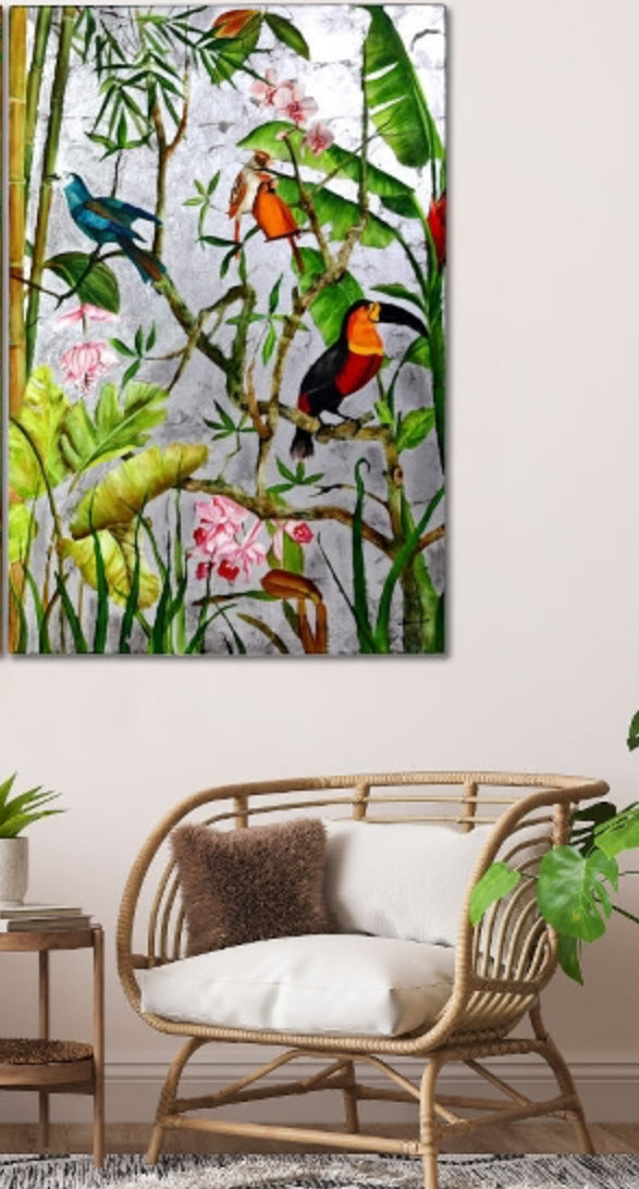 تفاصيل لوحة "المناطق الاستوائية الفضية"، مجموعتان. أكريليك على قماش، ٩٧×١٤٦ سم