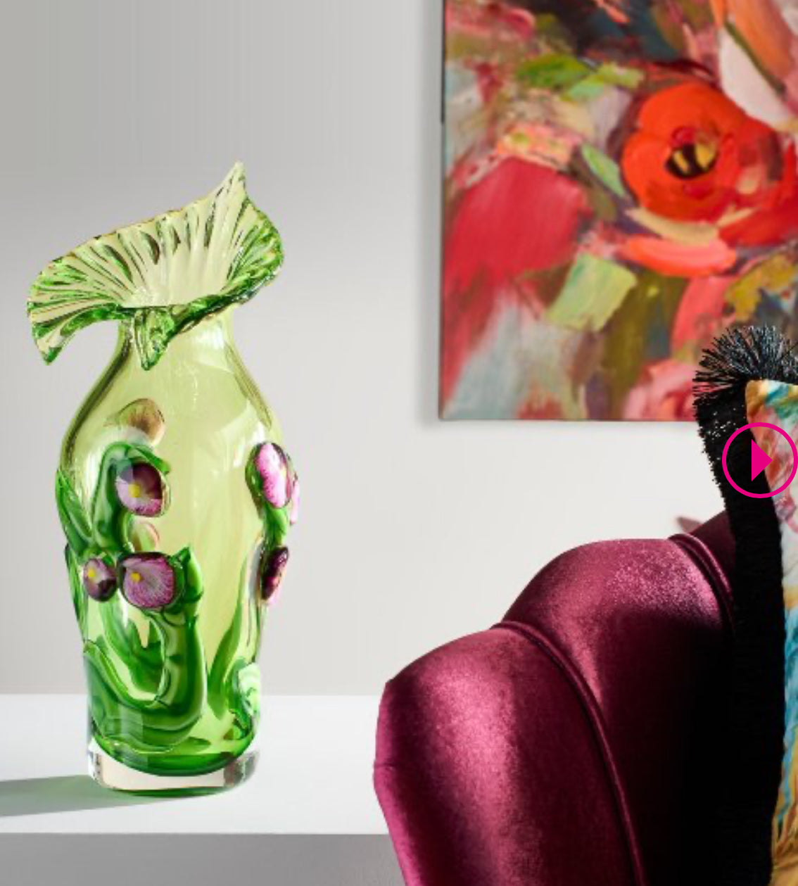 Vase "fiorito" green, glass, 1