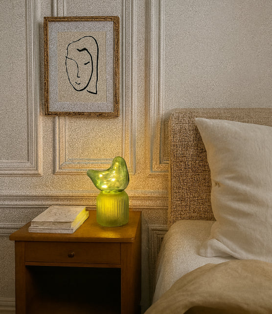 Deco LED bird green battery operated l12 5 p8 5 h18 5cm This pretty LED bird-shaped decoration emits a soft light that warms the atmosphere. Perfect for a calm and natural ambiance, it adds a touch of tenderness to your decor. Batteries not included. Requires 3 AAA batteries طائر LED أخضر مزخرف يعمل بالبطارية، طوله 12.5 سم، وعرضه 8 سم، وارتفاعه 18 سم. يُصدر هذا الزينة الجميلة على شكل طائر LED ضوءًا ناعمًا يُضفي جوًا دافئًا. مثالي لخلق أجواء هادئة وطبيعية، ويُضيف لمسة رقيقة إلى ديكور منزلك. البطاريات غير مُرفقة. يتطلب 3 بطاريات AAA.