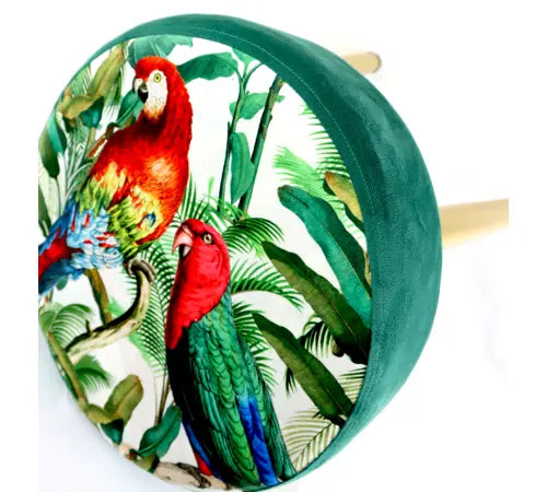 السعر العادي 989.00 SR حفظ 0.00 SRMade from high-quality Velvet PE (polyester), Sponge PU (polyurethane) and solid Wood DMF (medium density fibreboard), the "PARROTS" stool combines exceptional design with hard-wearing quality. The cotton fabric in a velvety look gives the stool a soft and luxurious appearance, which is lively and expressive thanks to the colourful Papagai pattern. With a diameter of around 40 cm, it is the perfect size for a wide range of uses - whether as a footstool, additional seating or a stylish decorative object in living rooms, bed room or interns