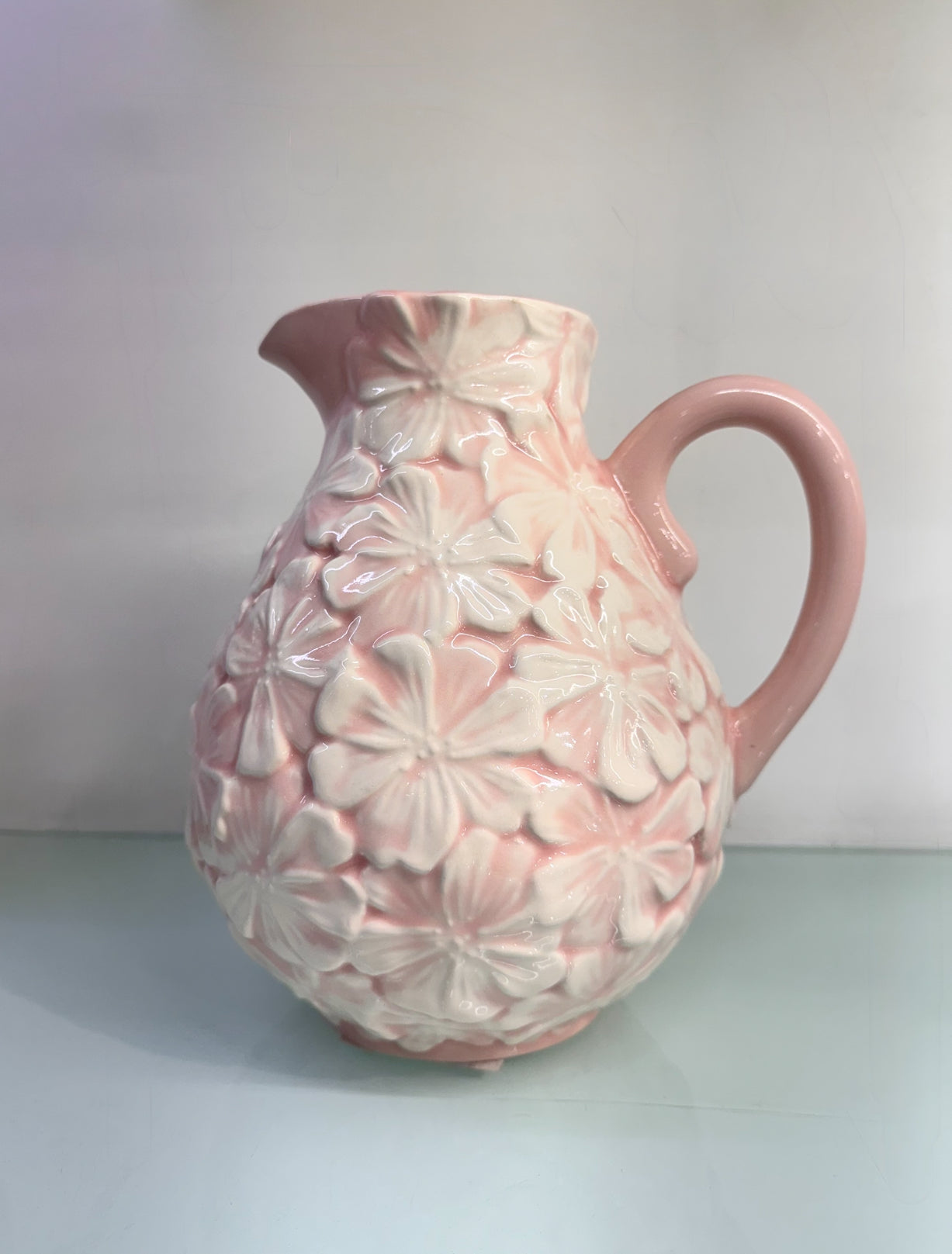 Lovely pink ceramic jug in a unique shape with the prettiest flower details – for you who loves the small details, just like we do! This jug is a true showstopper in any home… use it as a jug on your dinner table or as a vase for some beautiful flowers. The jug can hold 2.4 L.