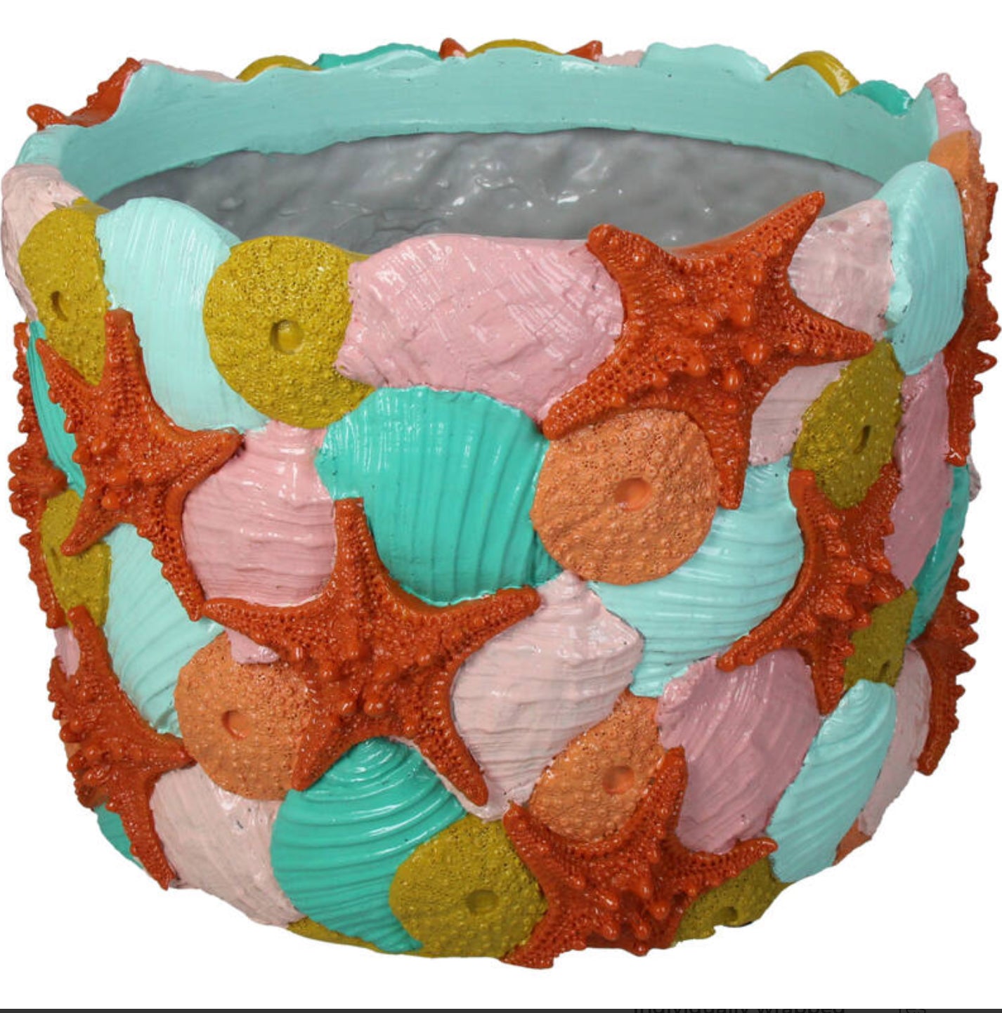 مزهرية متعددة الألوان من البولي ريزين على شكل اصدف