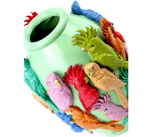 The "PARROT" vase impresses with its unusual combination of a delicate mint green and the detailed, colourful parrots. Made from high-quality plastic, the vase offers a durable and shatterproof alternative to traditional ceramic or glass vases. With a height of around 18 cm, it is the perfect choice for stylishly presenting smaller flower arrangements or artificial flowers. In combination with the eye-catching colour scheme, it brings tropical flair to any room - whether living room, kitchen or office.