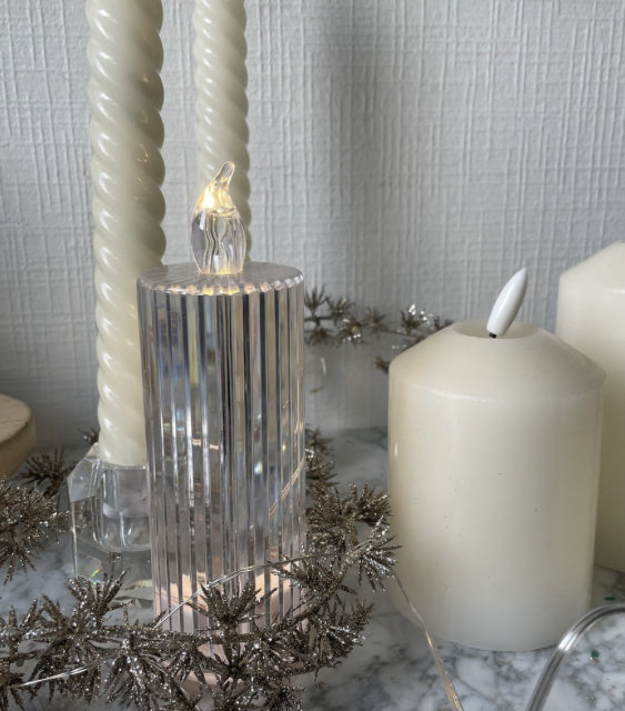 Deco candle LED striée d5 3 h15 5cm battery operatedBattery-powered (3x LR44 batteries included)شمعة ديكور LED مخططة D5 3 H15 5 سم تعمل بالبطاريةتعمل بالبطارية (3 بطاريات LR44 مرفقة)