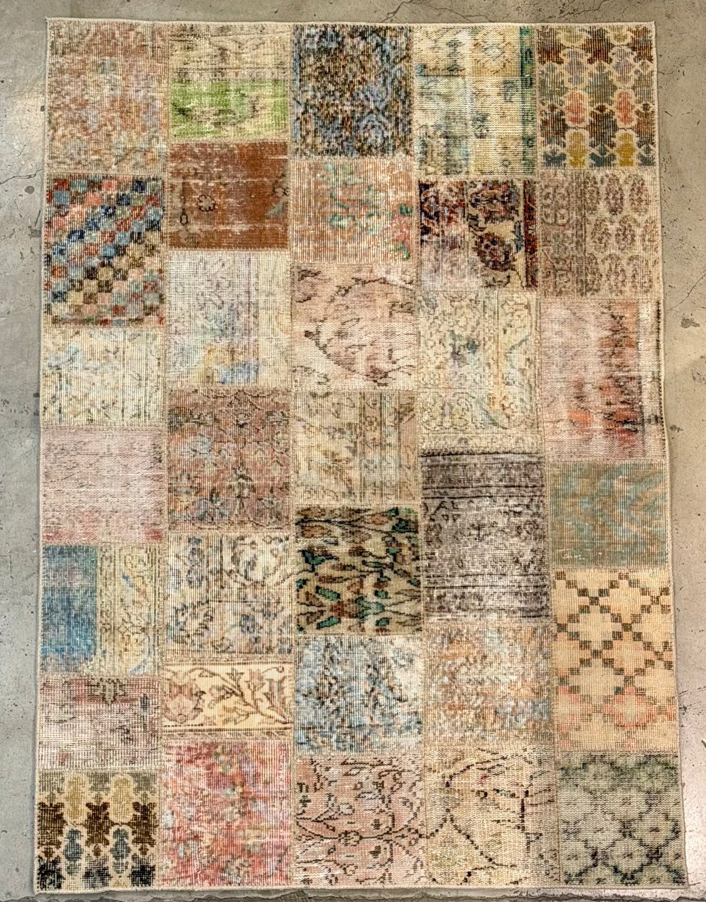 سجادة بيج مرقعة أصلية معقودة يدويًا