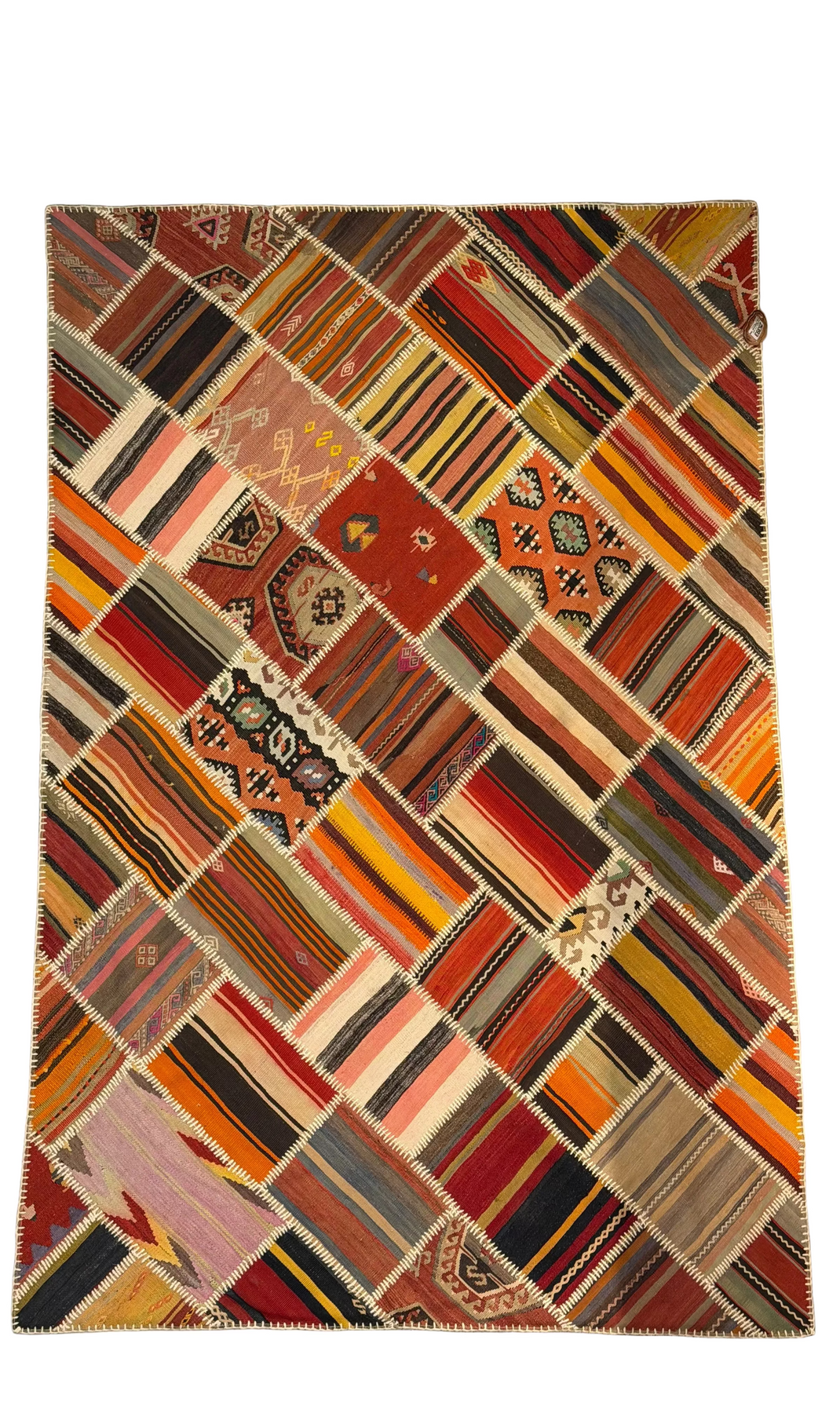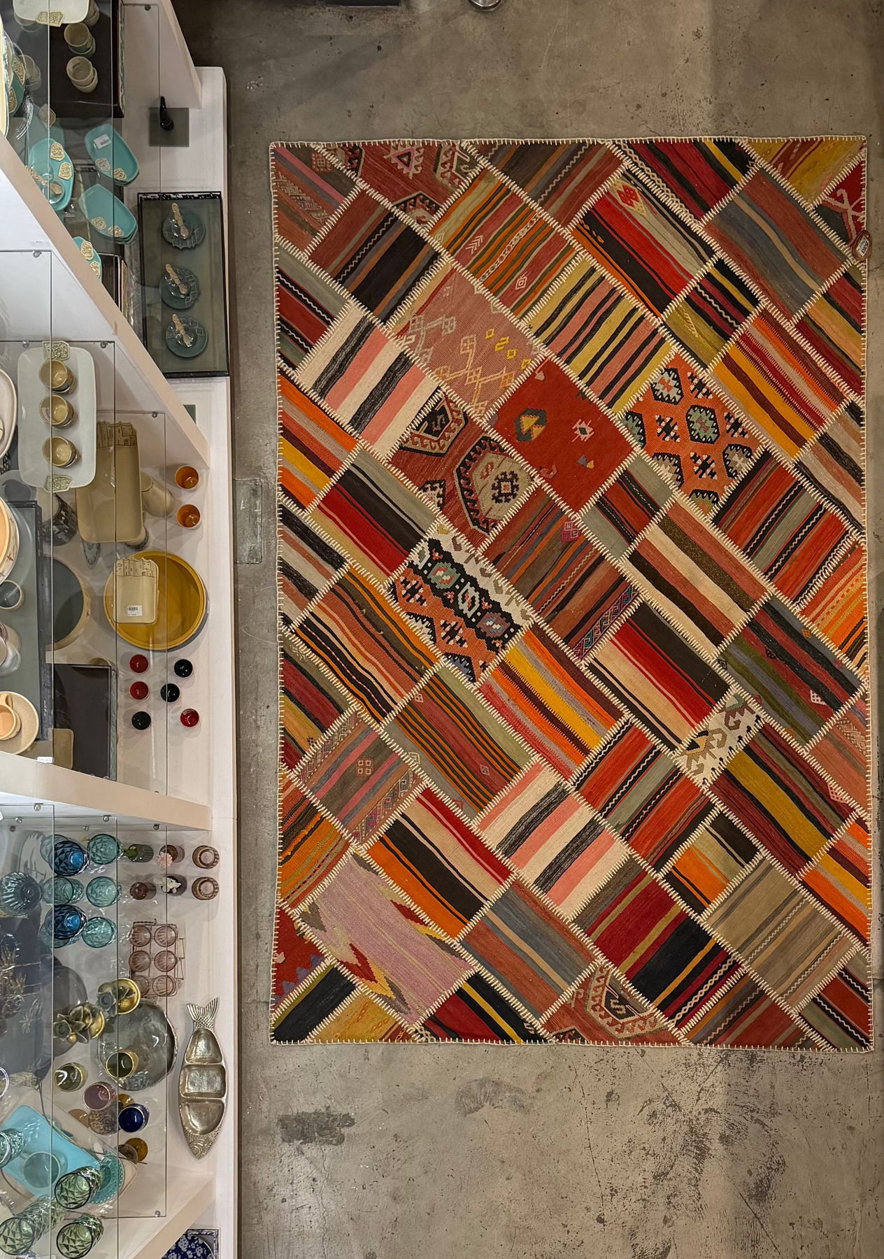 هذه السجادة مصنوعة من الصوف (الوبر) والقطن (السدى ) المصبوغين عضويًا، وهي سجاد تركي عتيق مصنوع يدويًا.
