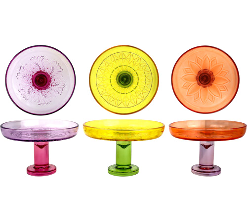 - **Unique design:** Three colourful glass goblets in purple, yellow and orange.