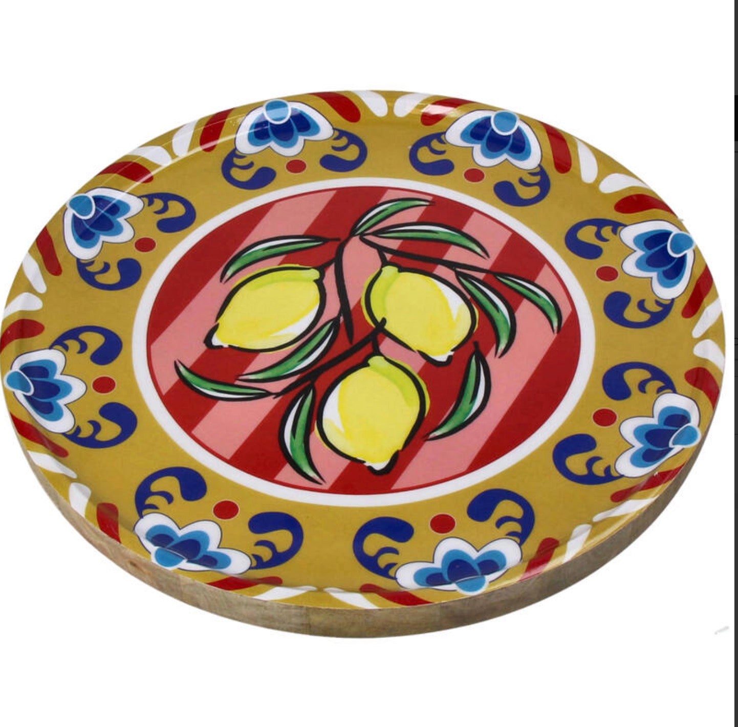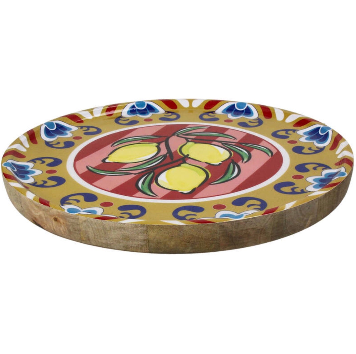 A mango wood plate with a floral pattern, ideal for a natural and charming presentation.
