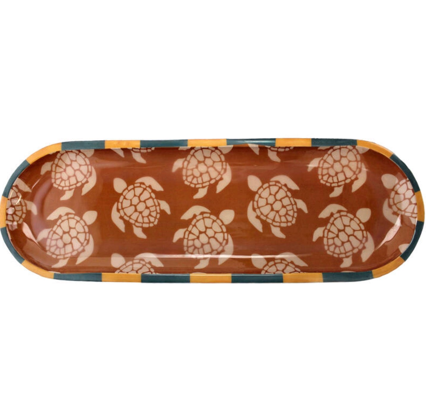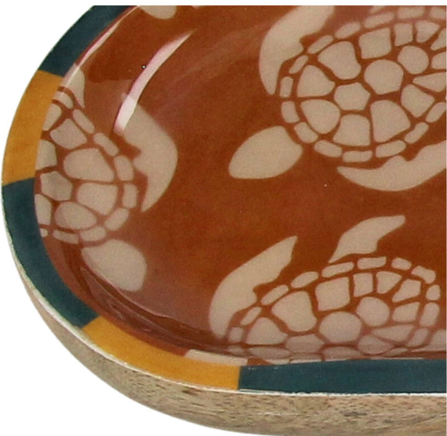 طبق من خشب المانجو مزين بنقشة سلحفاة، مثالي لإضفاء جوٍّ مرحٍ وبحريّ.