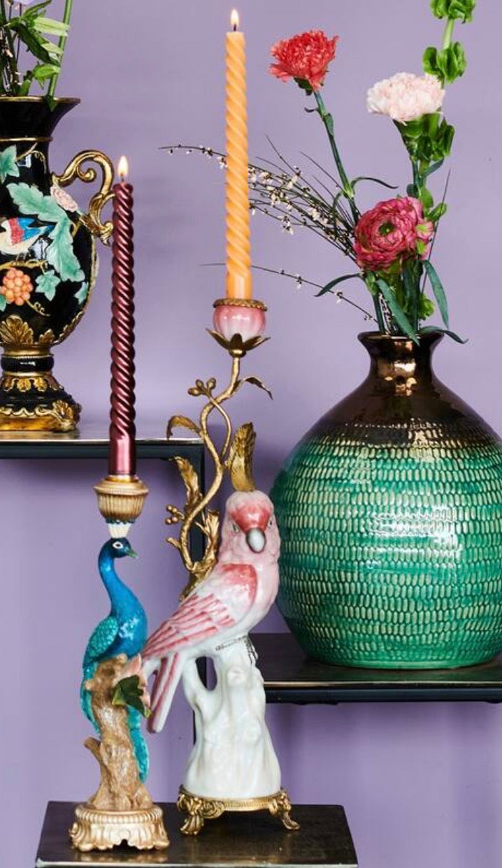 Candle Stick with a colorful peacock design, perfect for a unique and artistic atmosphere in your interior.حامل شموع بتصميم طاووس ملون، مثالي لإضفاء جو فني فريد على ديكور منزلك.