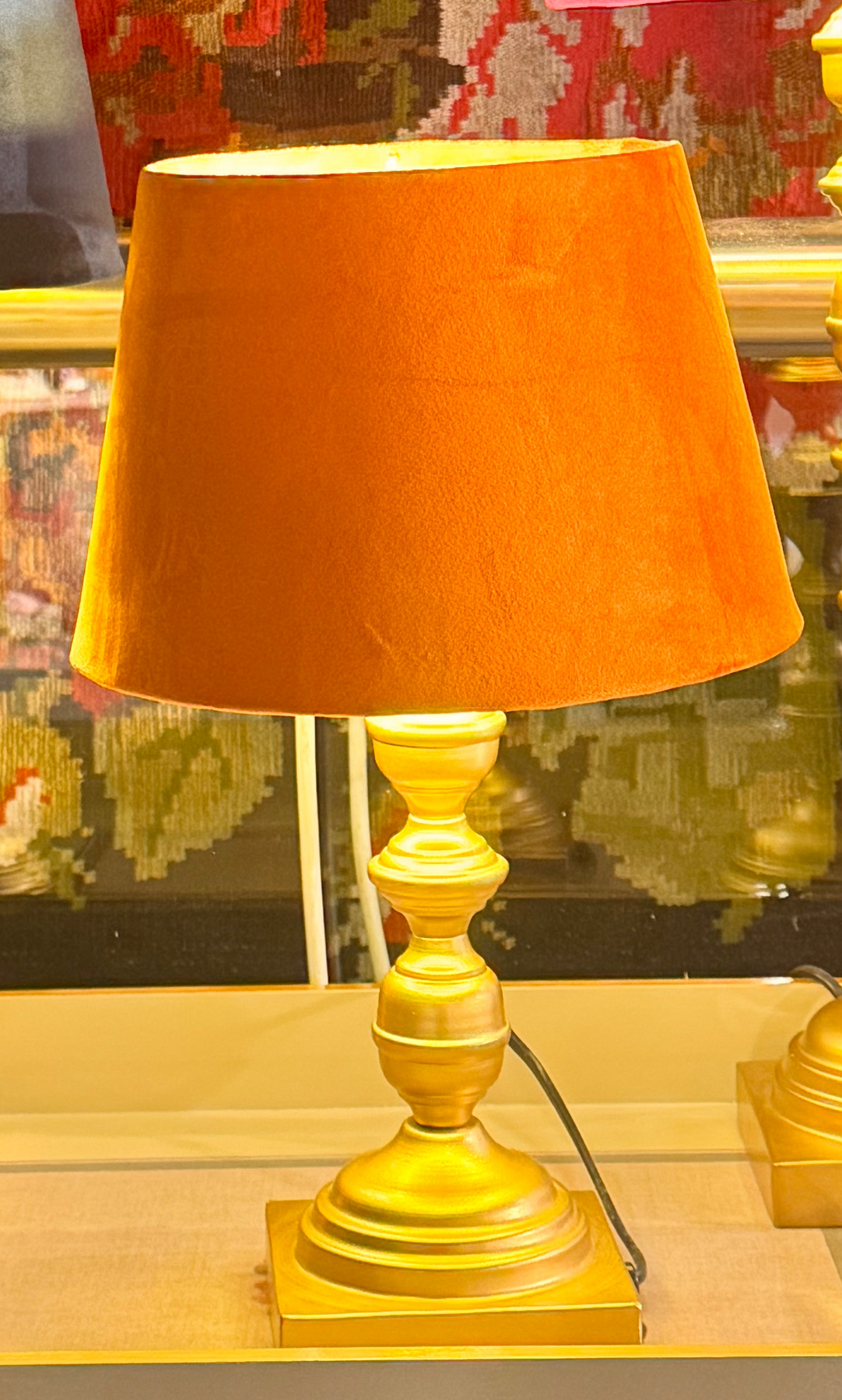 اضاءة طاولة مقاس صغير قاعدة خشب ذهبي مع غطاءمخمل برتقالي