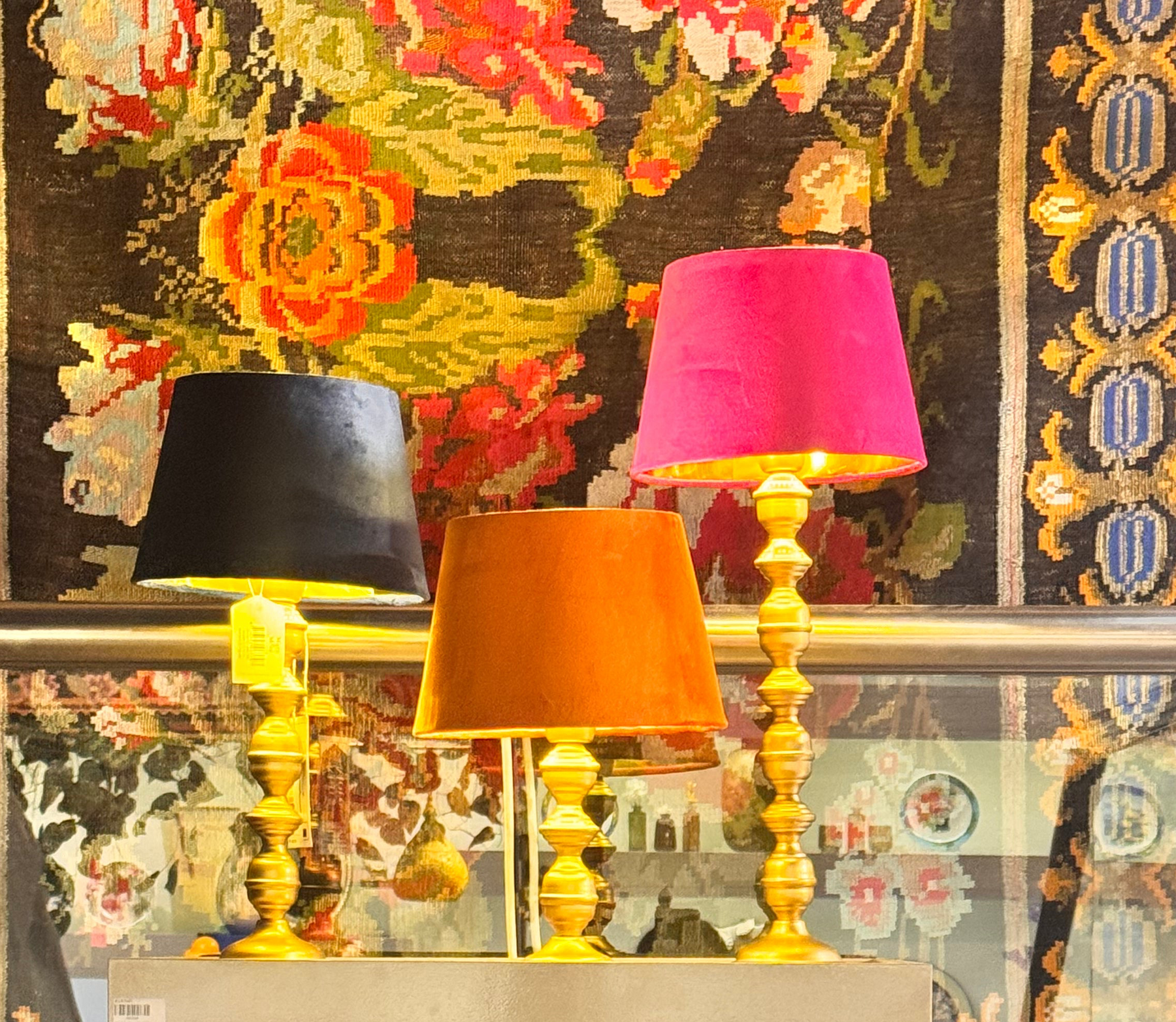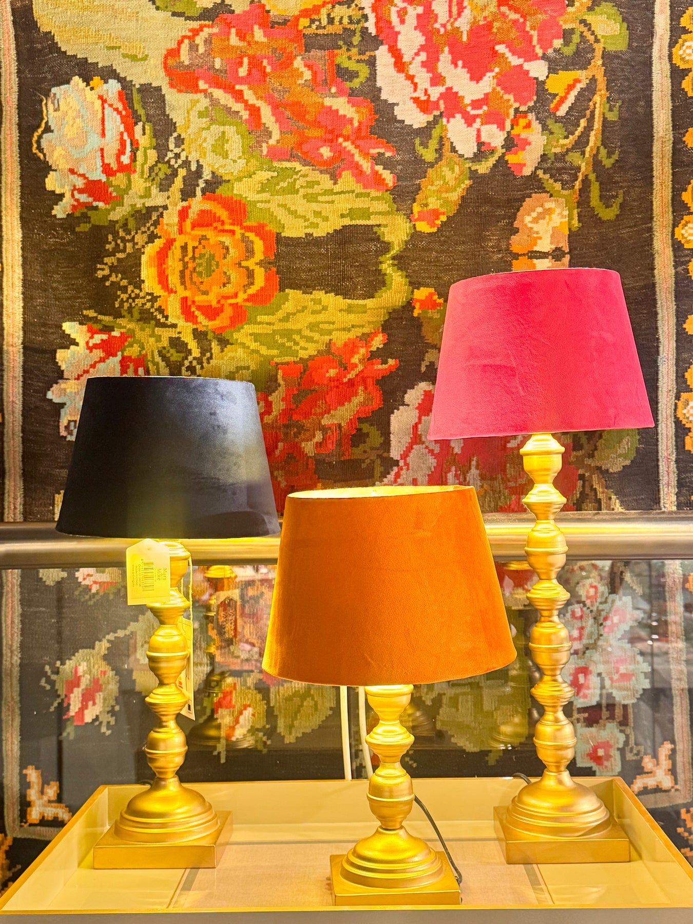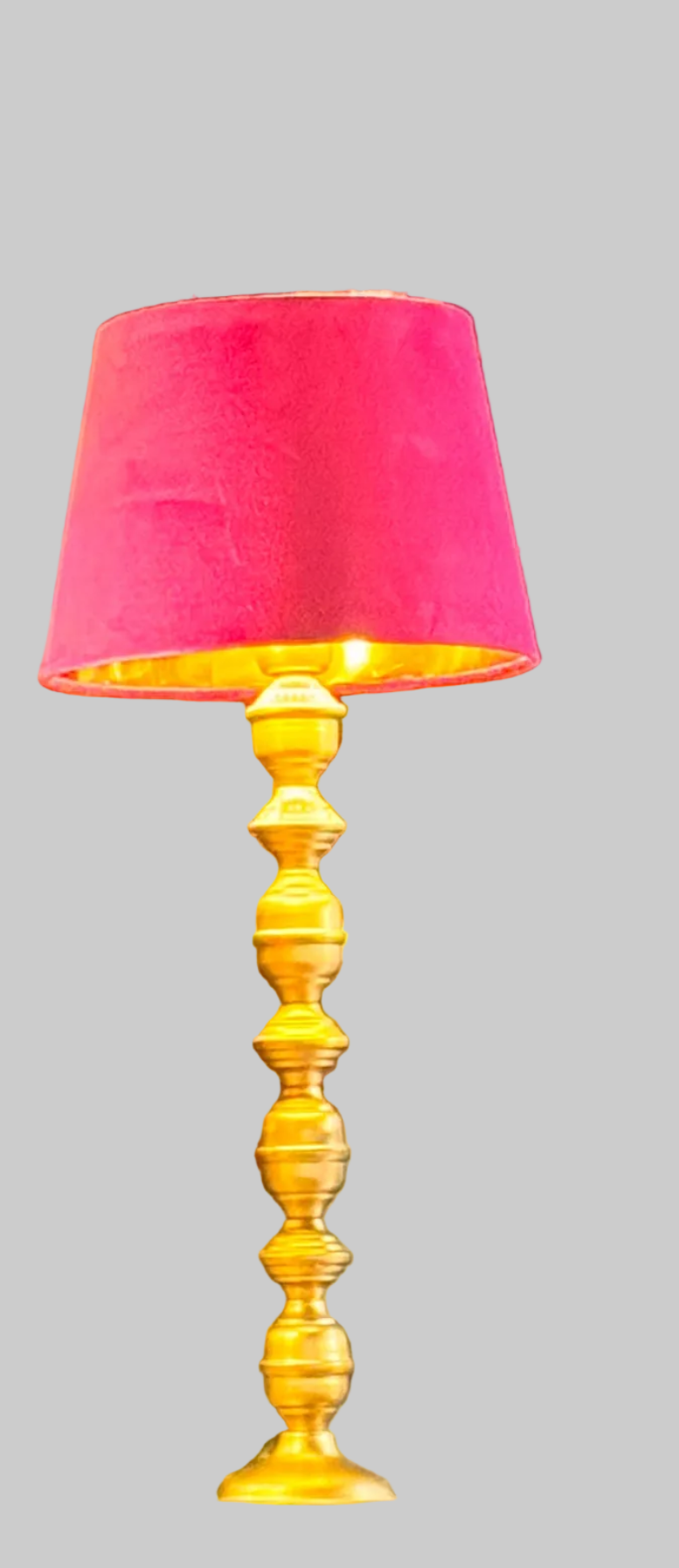 اضاءة طاولة القاعدة خشب ذهبي والغطاءمخمل فوشي