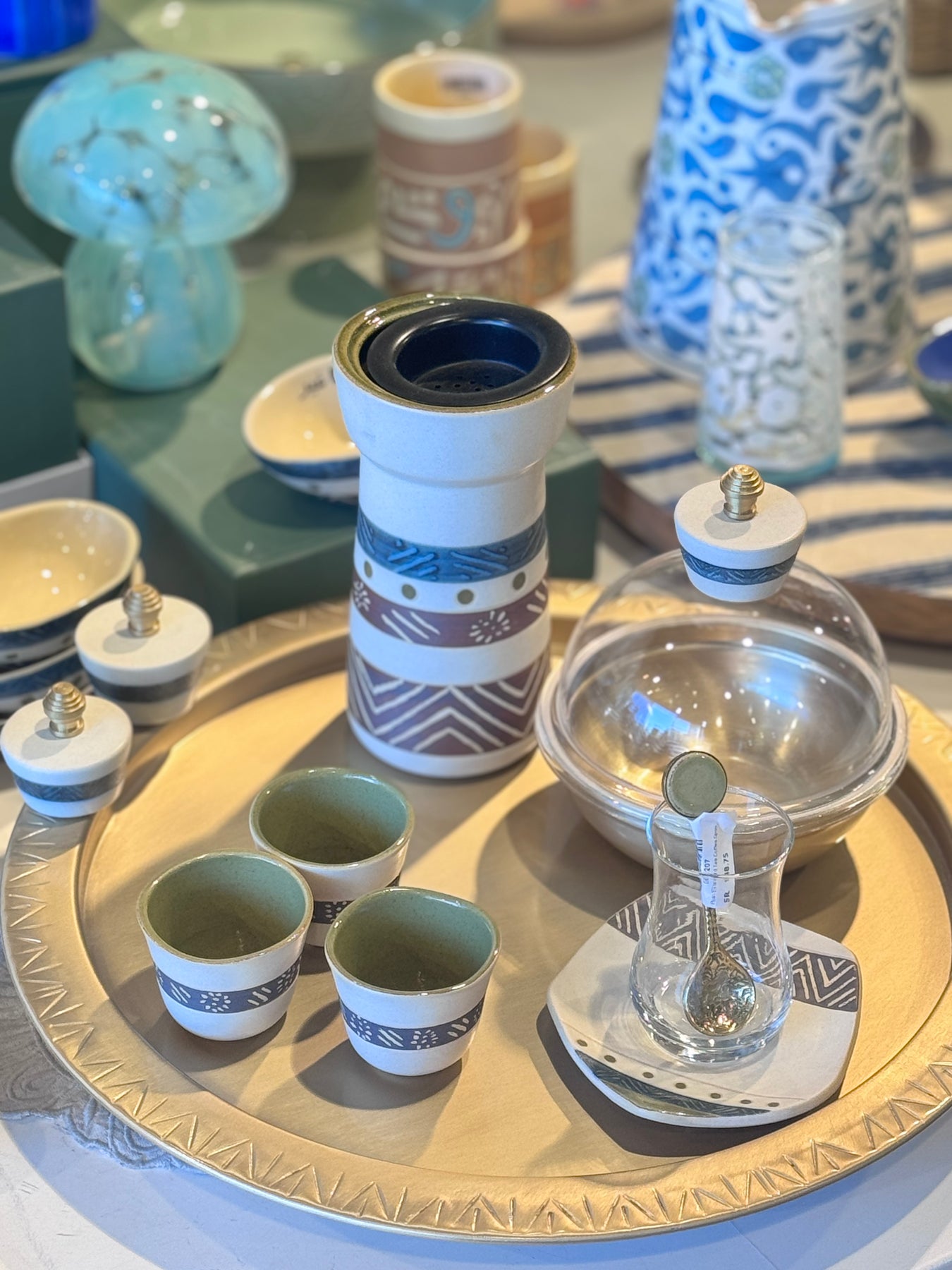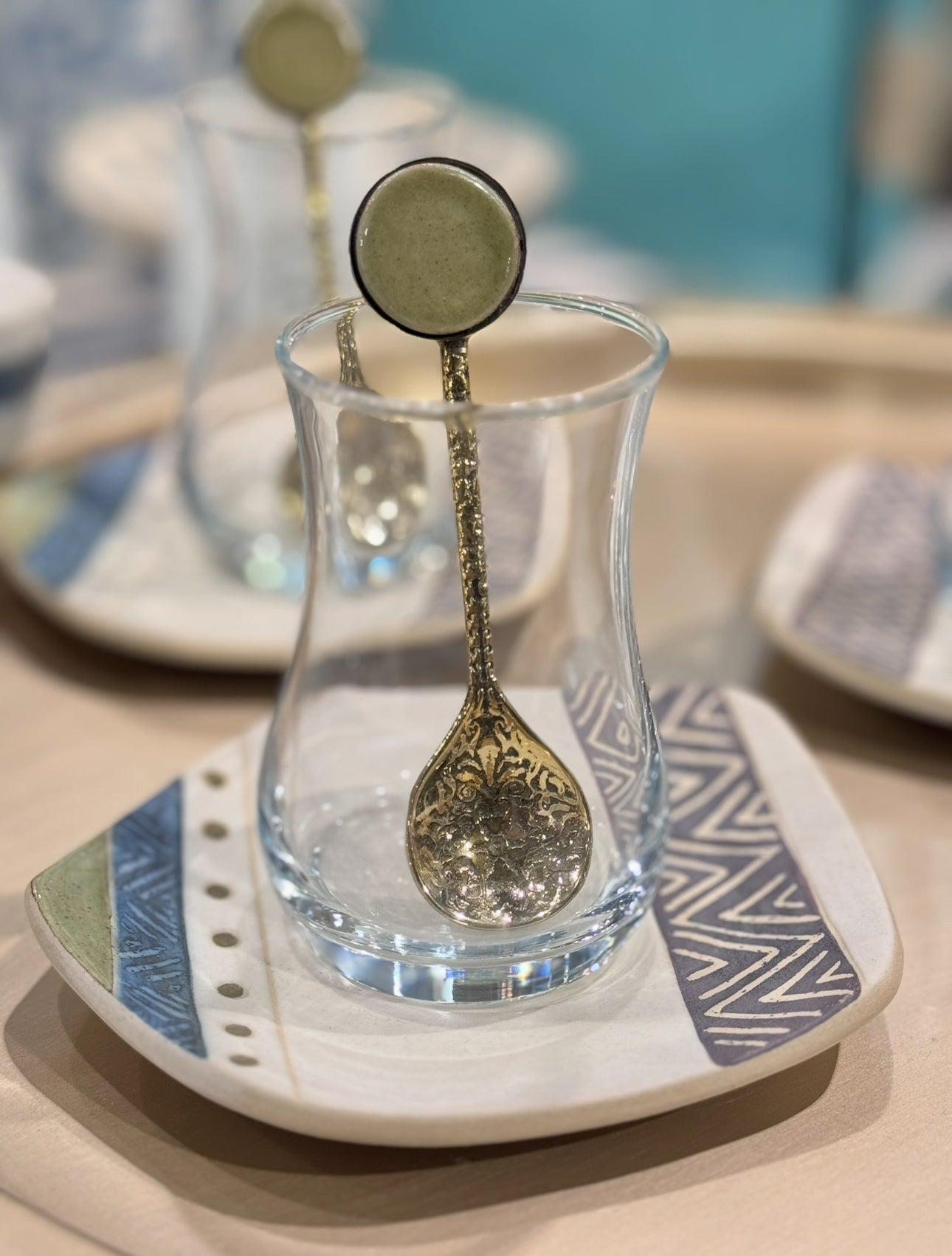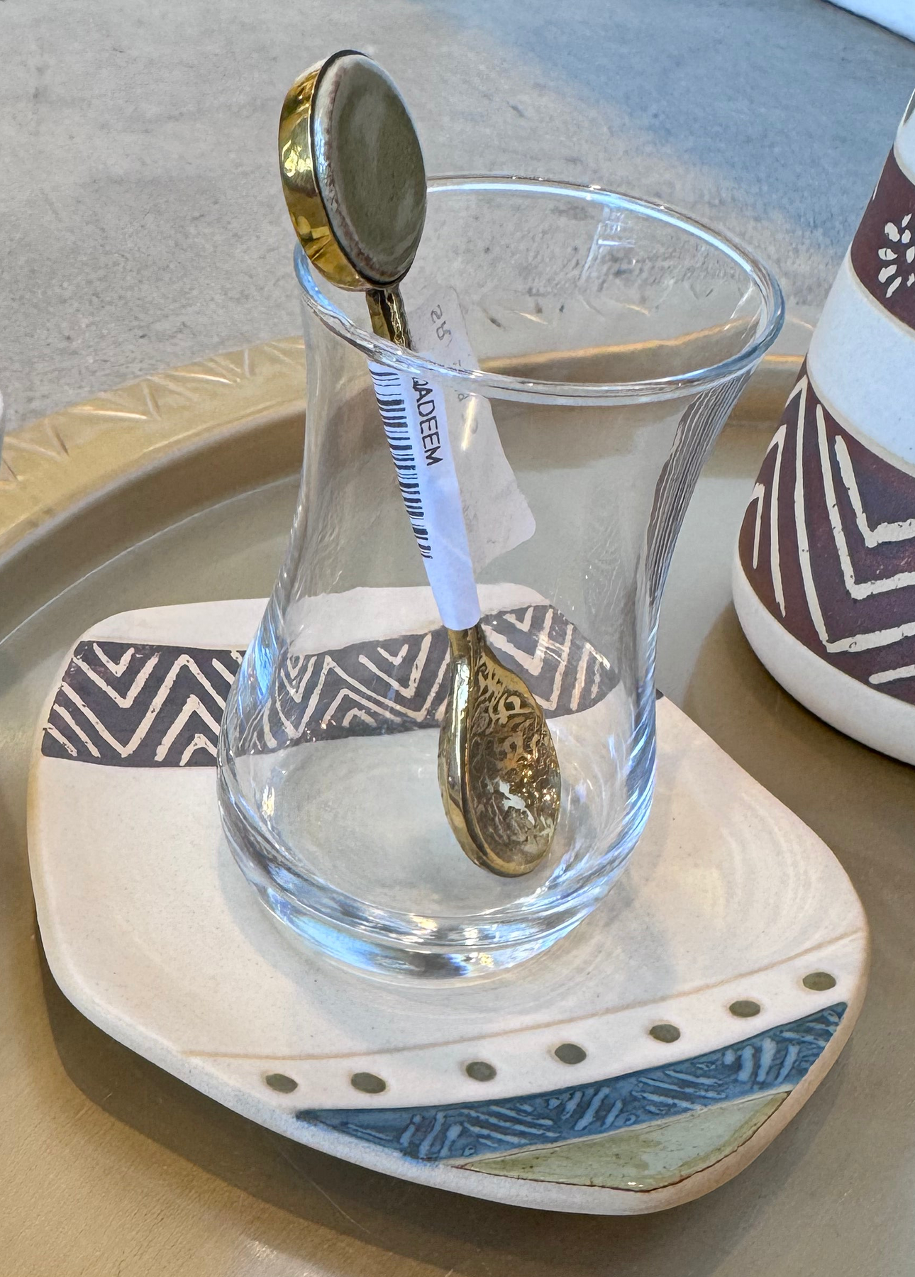 طقم كاسات شاي 6 كاسات مع صحون فخار مجدل بدوي فخار يدوي