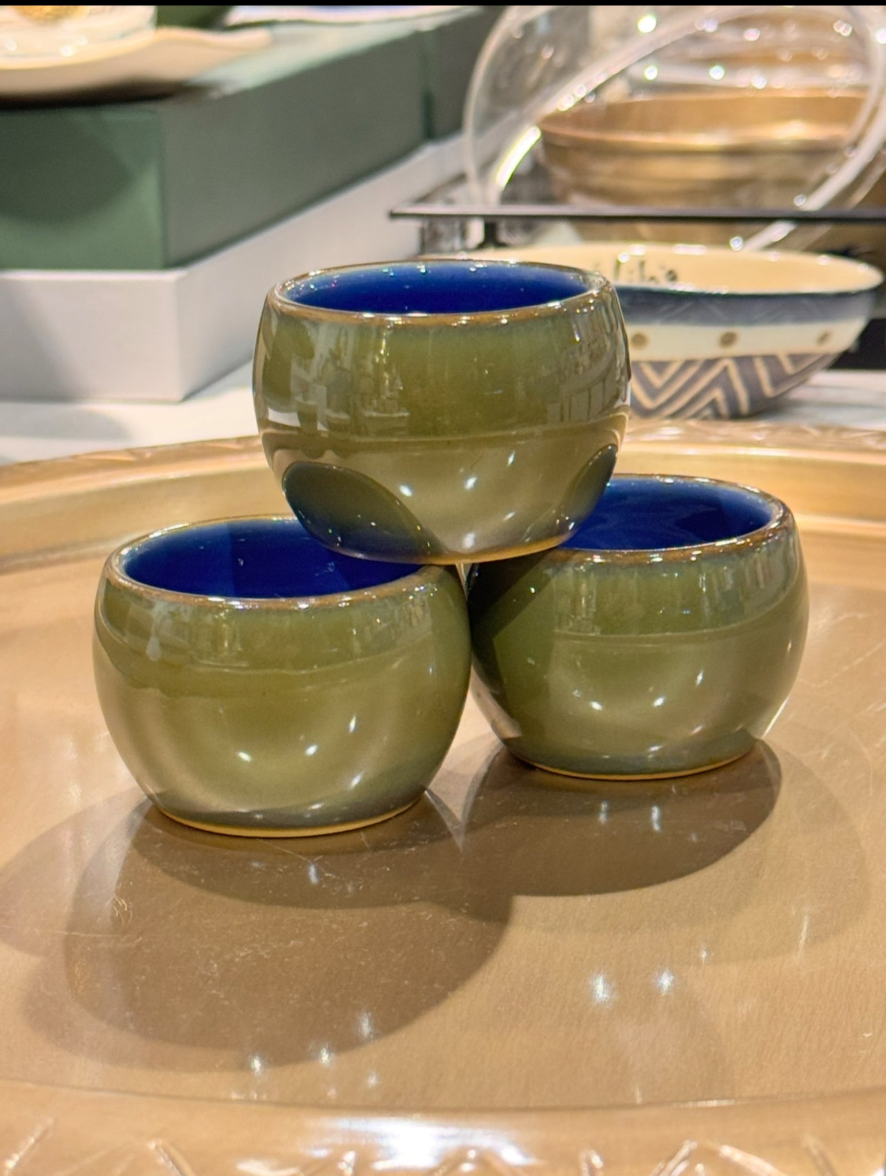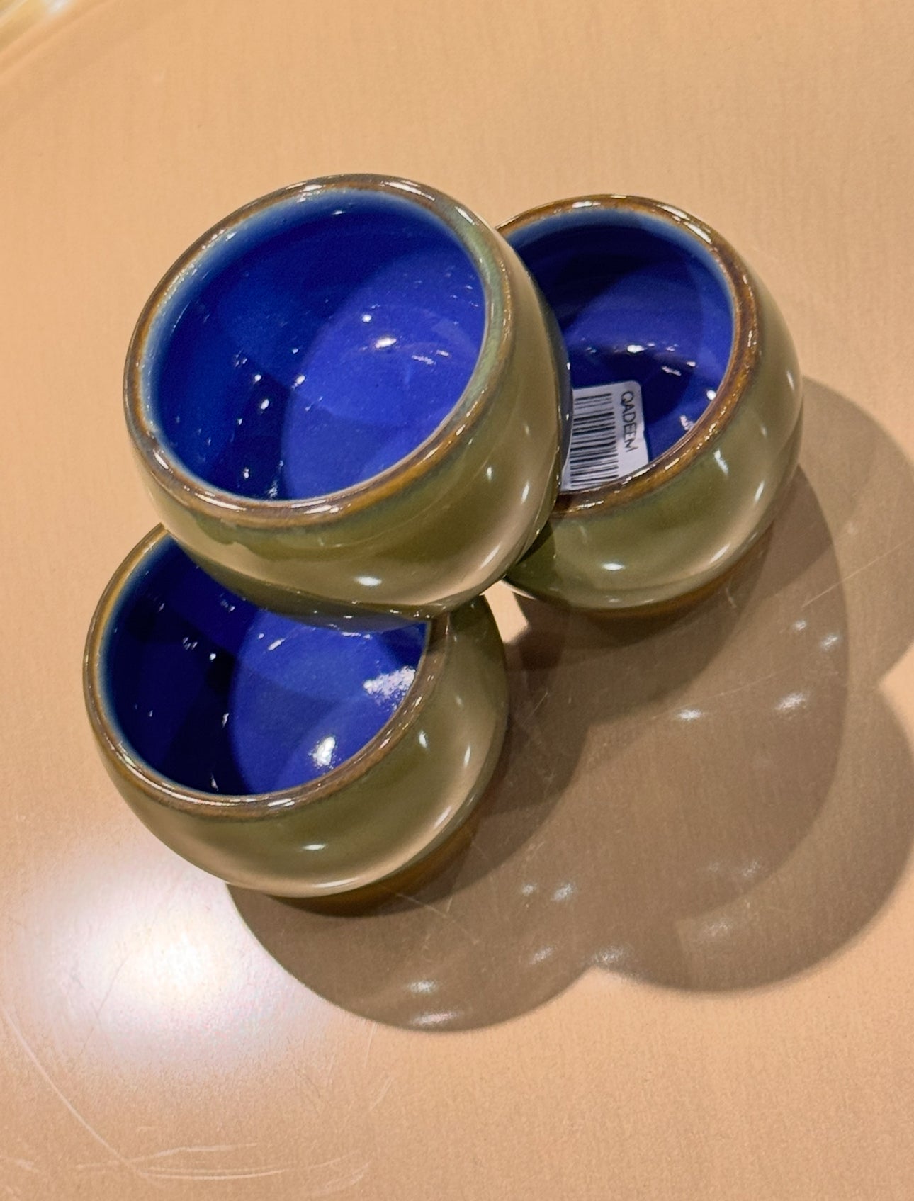 طقم 6 اكواب قهوة عربي سعودي فخار من الداخل ازرق