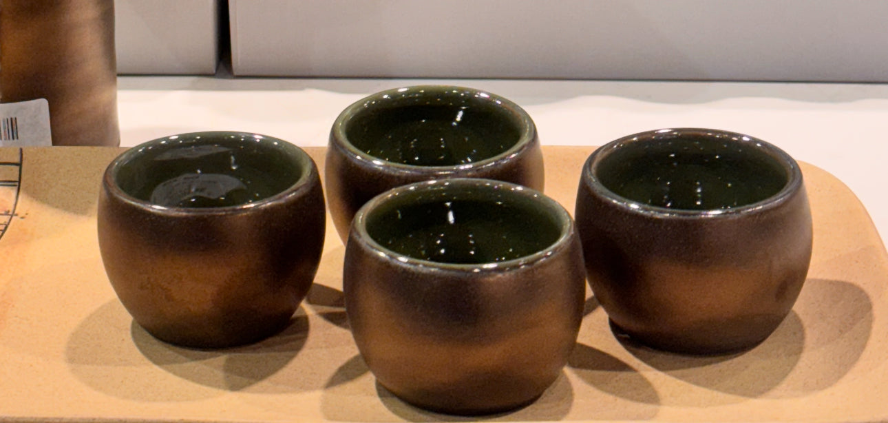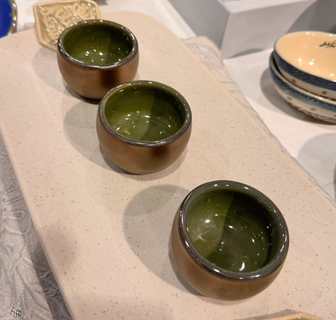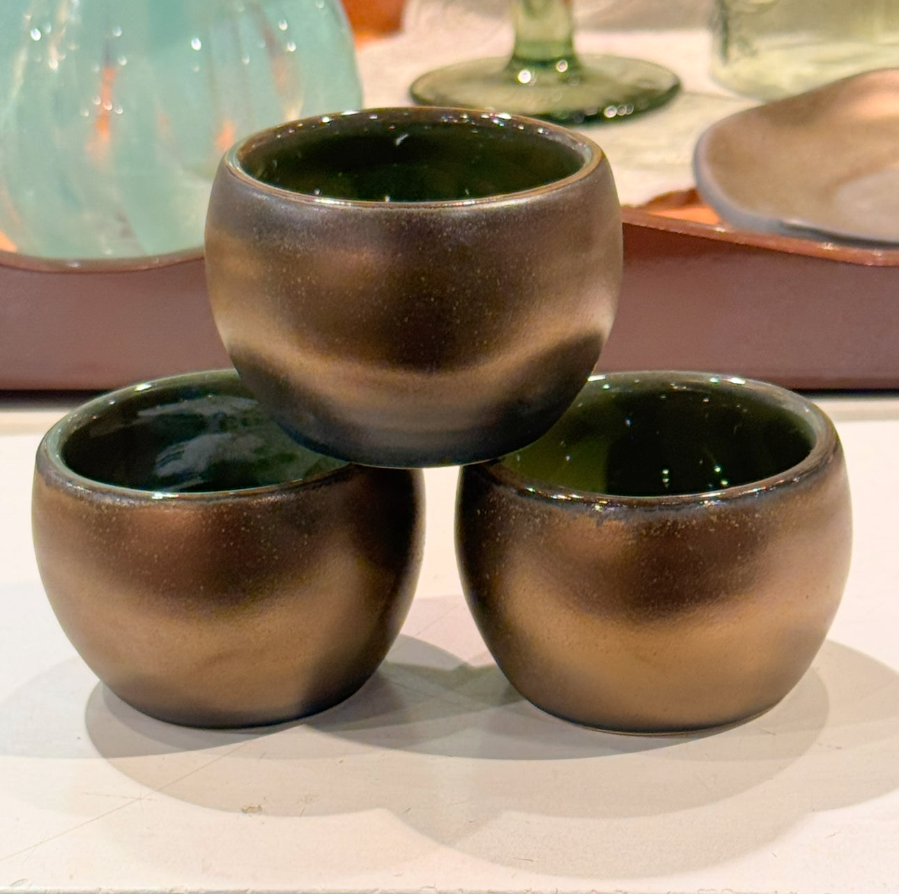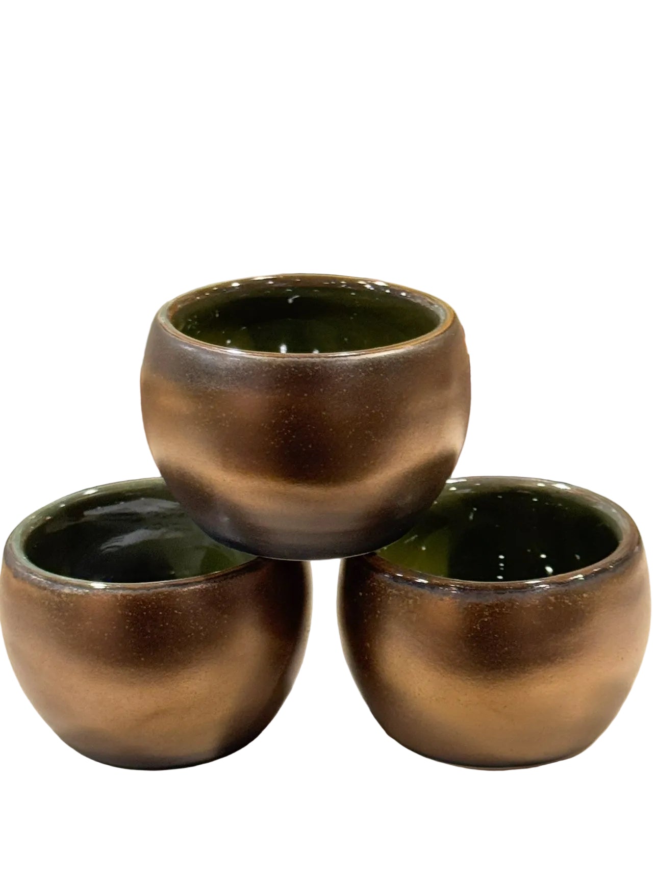 اكواب قهوة عربي برونز وزيتي طقم ٦ اكواب فخار يدوي