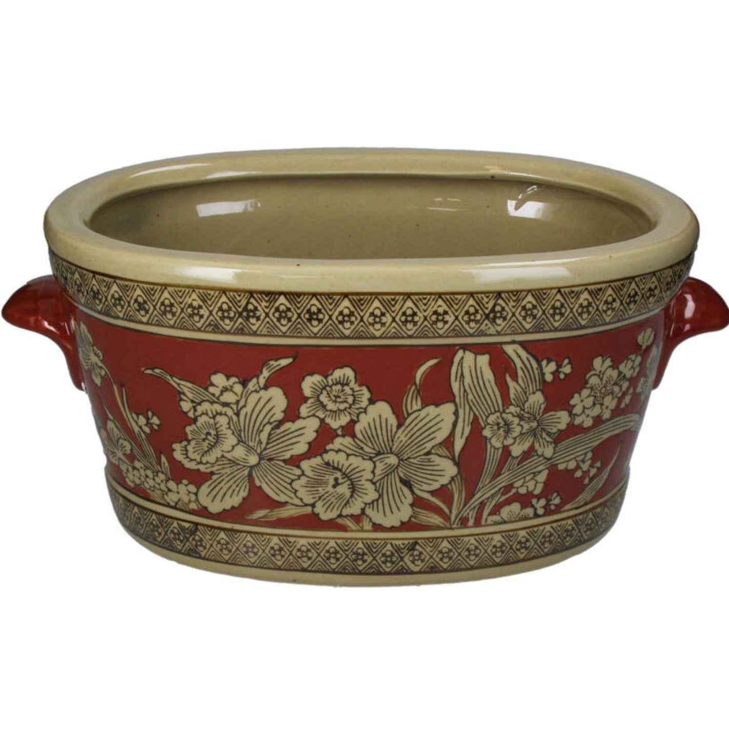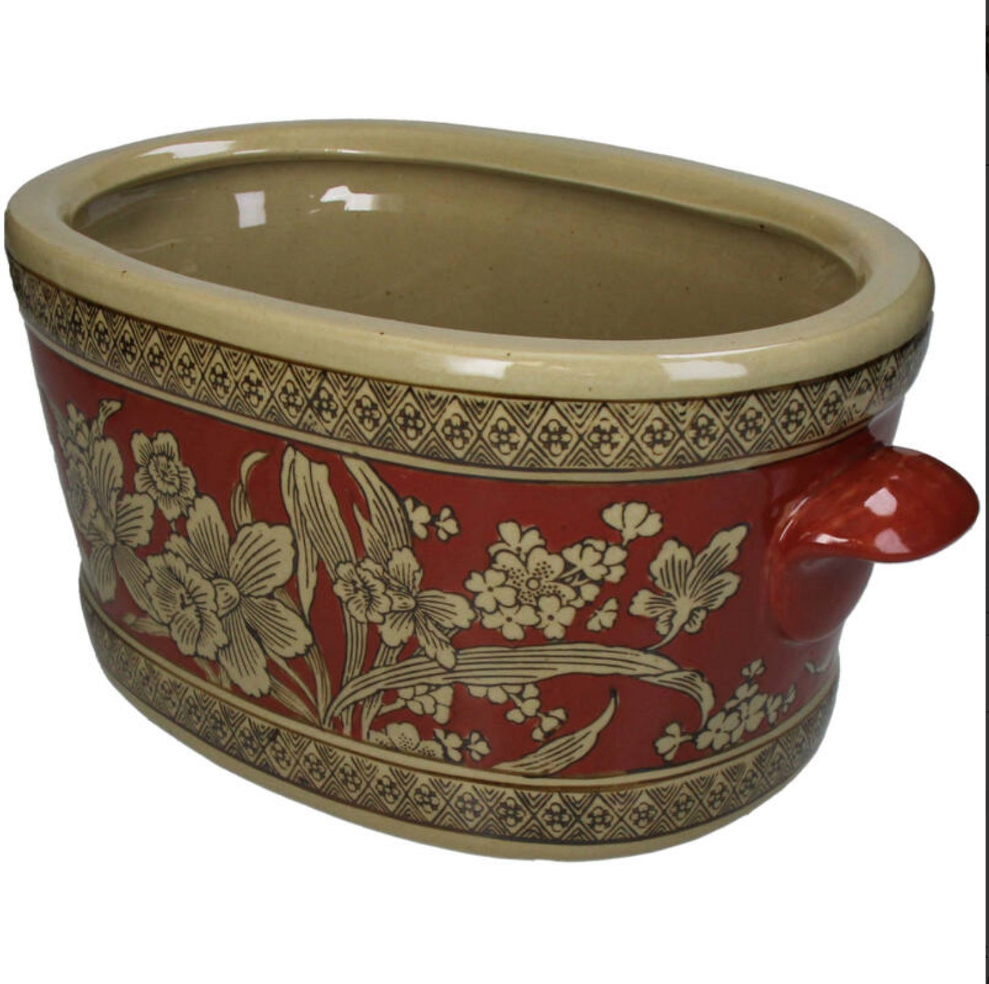 أصيص او مركن نباتات من الخزف الطيني، أبعاده ٣٥.٥ × ٢٠ × ١٦ سم، مثالي لإطلالة أنيقة ودافئة. ا.