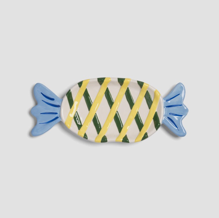 The hand-painted goody plate adds a touch of sweetness to your table.