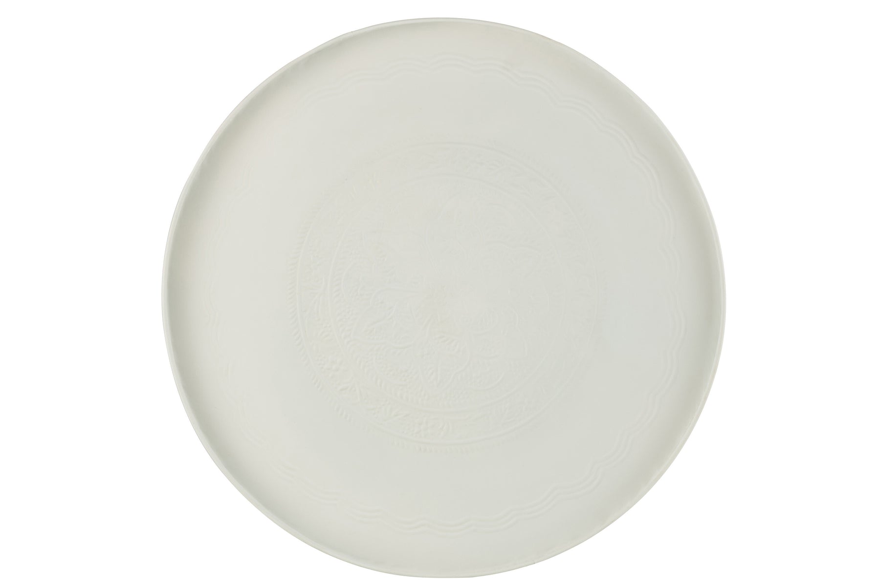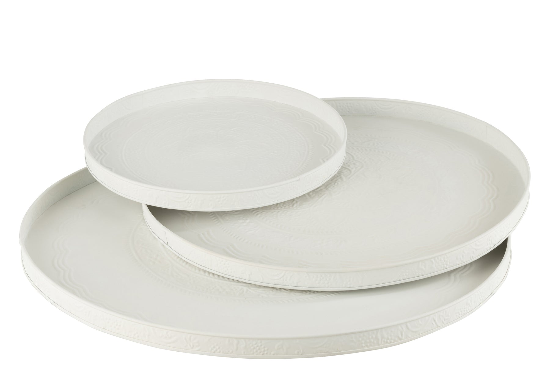 صينية دائرية كلاسيكية من الحديد الأبيض، مقاس كبير