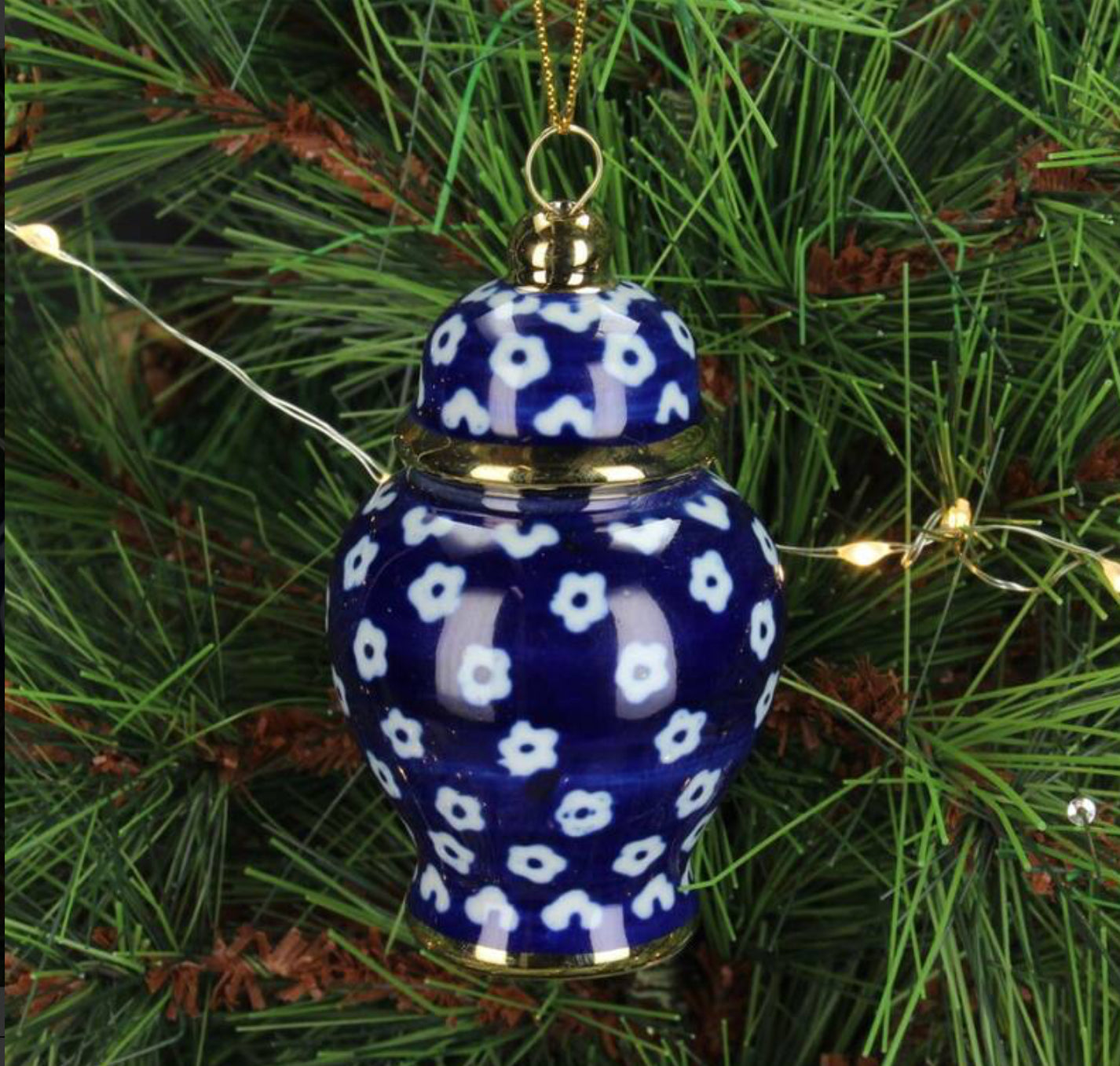 ORNAMENT JAR PORCELAIN BLUE white flower